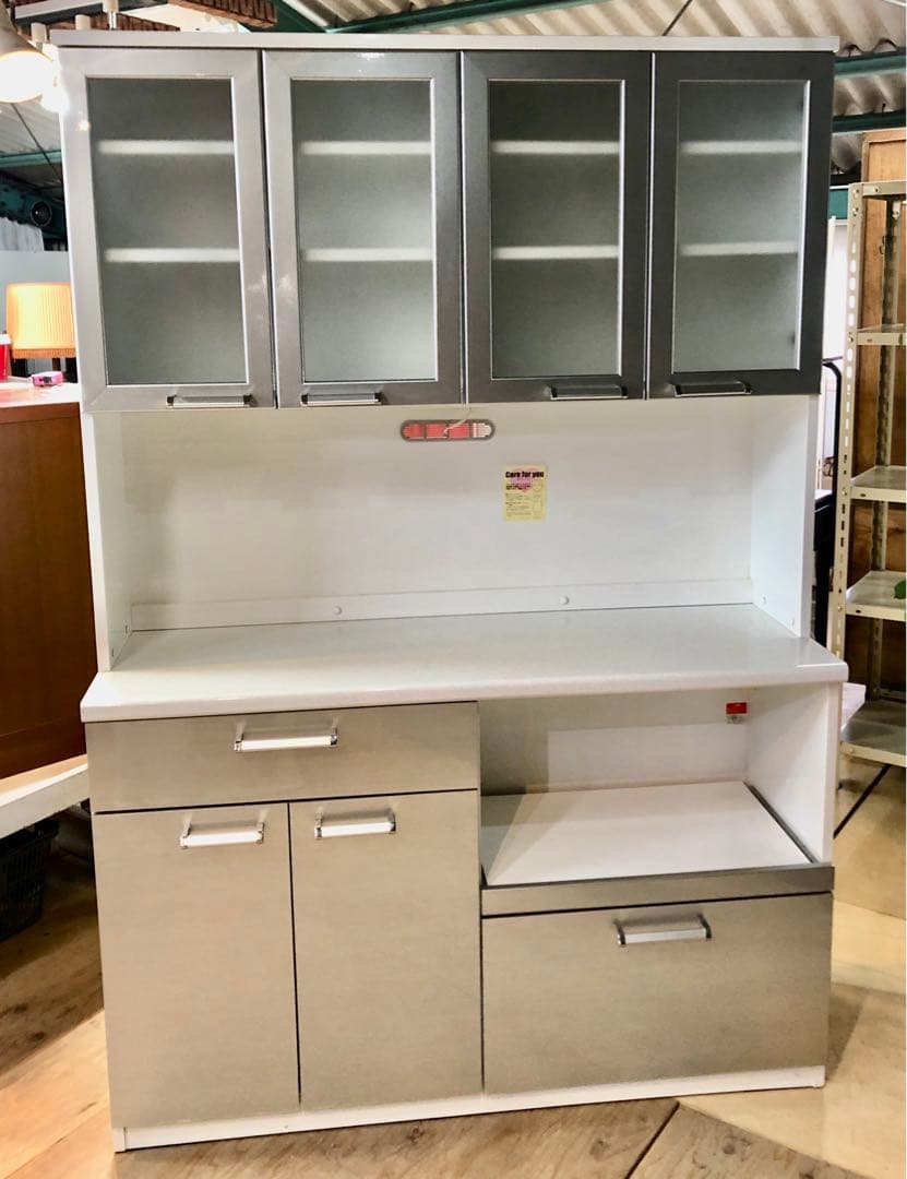 美品 大川家具 古賀家具 食器棚 キッチンカウンター カップボード 完成品 国産ブランド:古賀家具工業商品名: キッチンカウンター セイント120カラー:ウォールナット付属品:カトラリートレイ・取扱説明書類・ステッカーサイズ:添付写真参照炊飯器スライドテーブル以外の全引き出し、扉はソフトクローズ仕様です。国産、完成品なので物はしっかりしているかと思います。電化製品などは付属しません。食器棚のみになります。新築分譲マンション入居に合わせて購入し、約1年の使用です。全引き出しに食器棚シートを敷いて使用しておりました。梱包・発送たのメル便 300で発送予定です。\r送料が高額なため、お値引きはご遠慮願います。\r全体的に綺麗な状態で目立った傷や汚れなどはないですが、こちらの見落としもあるかもしれませんので、あくまで中古品ということをご理解下さい。